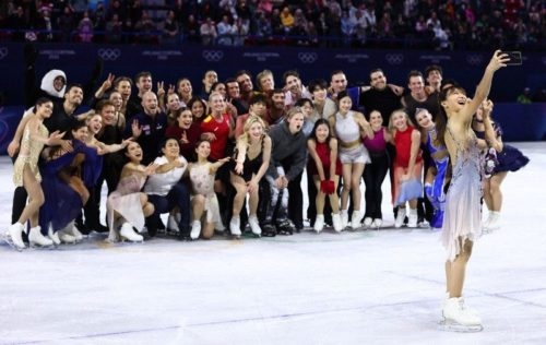 エキシビションのエンディング、坂本花織の自撮りで盛り上がる全出演者たち🤳 pic.twitter.com/a9mEt2awWC