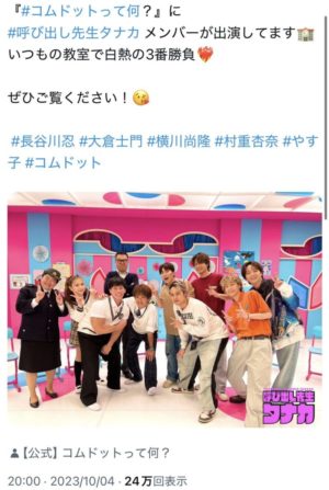 2023年10月4日放送のフジテレビ『コムドットって何?』での共演でした。