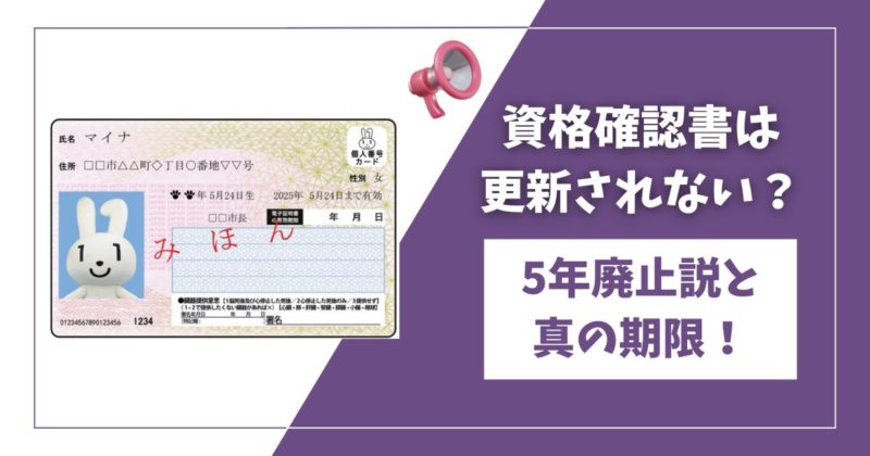 結論から言うと、資格確認書は「当面の間(最長5年と言われています)」は更新されます!